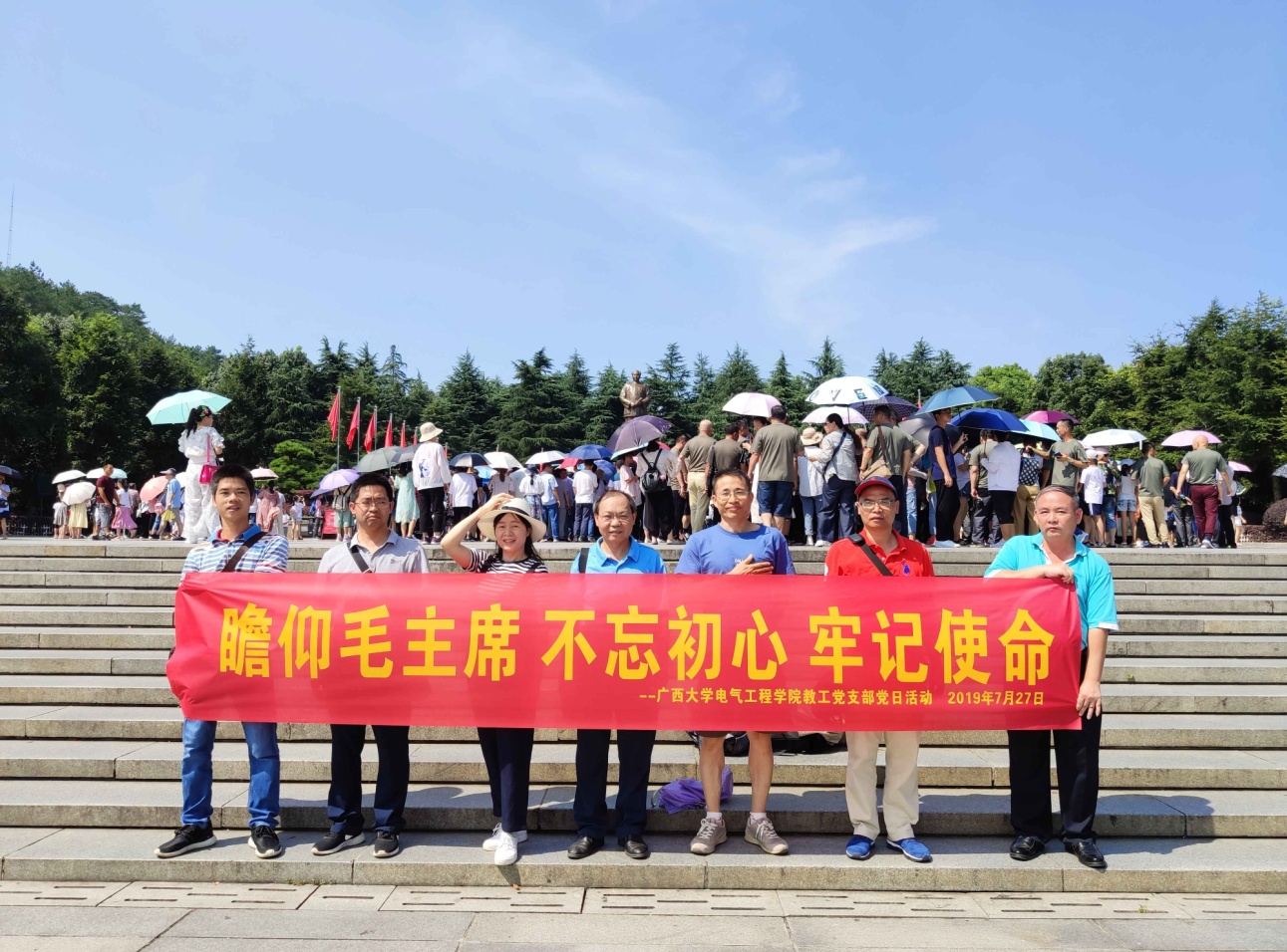 武汉(南方十一省)电工理论学会第31届学术年会于2019年7月25日-7月28日在湖南省长沙市举行。藉此机会,2019年7月27日在公司党委书记梁京章带领下,全体参会教师(党员和入党积极分子),赴湖南韶山开展了主题为“瞻仰毛主席,不忘初心、牢记使命”的主题党日活动。