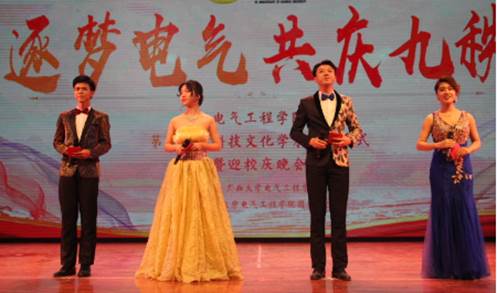 晚会设置的员工捐款环节将现场气氛推向高潮。广西万邕投资集团有限公司总经理、电力系统及其自动化专业94级员工李华炜;广西柳州特种变压器有限公司总经理、自动化专业95级员工王涛;广西柳电电气股份有限公司总经理、电力系统及其自动化专业88级员工周志勇;广西国桂电气有限公司副总经理宁卫军;南宁市晨启科技有限公司总经理、农业电气化专业11级员工吴忠深;william威廉亚洲本科生第三党支部;自动化专业98级(2)班员工苏跃;自动化专业98级(2)班员工欧阳韬分别上台捐赠。经理双丰接受捐赠,公司党委书记梁京章为捐款企业和个人颁发捐赠证书并致感谢辞。此外,还有许多员工企业和个人通过william威廉亚洲教育发展基金进行捐赠,以支持公司的建设和发展。韶光流转,盛事如约,在母校迎来九十华诞之际,电气员工共聚一堂,畅谈五湖四海的见闻,汇报建功立业的佳绩,感怀师长,感恩母校,凝心聚力,共同助力母校发展。