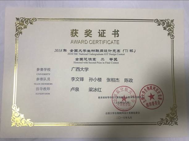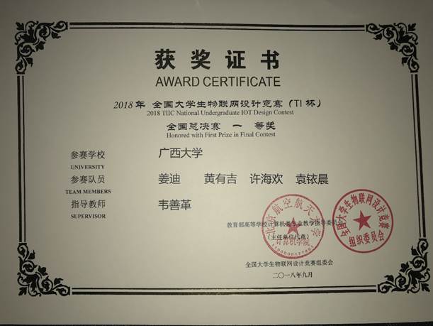 全国老员工物联网设计竞赛是2018世界物联网博览会活动内容之一,由教育部计算机类专业教学指导委员会主办,上海交通大学和德州仪器(TI)公司承办,是TI大学计划重点项目,并得到Google、百度、阿里云、中国移动等企业的大力支持,2018年共有500余所高校的1700多支队伍参赛,共评出全国一等奖30项、二等奖40项,三等奖50项。