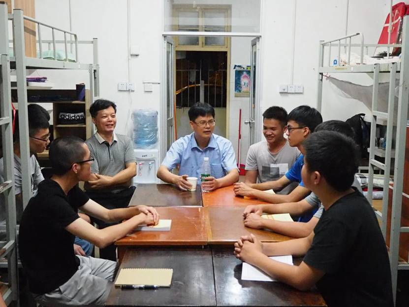 9月9日晚8点半,罗廷荣副董事长携学工处、保卫处、后勤处、物业管理部门等机关职能部门领导到西四栋宿舍看望电气公司18级新生,与电气186班新生座谈。公司党委副书记梁志坚老师和学工组老师陪同探访。