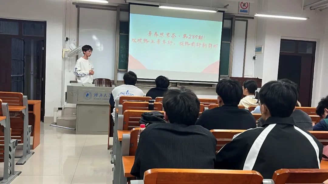 为深入学习贯彻习近平总书记关于碳达峰碳中和工作的重要论述,帮助青年学子理解习近平新时代中国特色社会主义思想对我国生态文明建设的重要影响,12月17日,公司在六教108教室开展了“‘碳’路青年,共筑未来”主题青春思享荟沙龙。本次活动由共青团william威廉亚洲委员会主办,公司团委承办,院员工会策划开展。 分享会上,与会成员深入学习了习近平总书记关于碳达峰碳中和工作的重要论述,并集体观看了“推动实现‘双碳’目标,书写绿色发展答卷”的新闻联播短片。大家认识到,党的十八大以来,以习近平同志为核心的党中央深刻把握生态文明建设在新时代中国特色社会主义事业中的重要地位和战略意义,创造性地提出一系列新理念新思想新战略,形成了习近平生态文明思想,为新时代生态文明建设、绿色低碳发展提供了根本遵循和行动指南。 本期青春思享荟紧密衔接公司团委“‘双碳’路上青年行,探路前行韵自明”主题团日活动。作为主题团日活动的参会员工代表,沈鑫同学结合自身的专业知识,分享了自己对“双碳”目标的理解,包括绿色电力、广西绿色发展目标等双碳相关知识。龚旭彪同学也分享了自己的心得,他呼吁大家从点滴做起,勇于创新,用所学专业知识助力能源转型和绿色发展,以实际行动展现青年的责任与担当,在“双碳”征程中彰显青春的价值。 沈鑫同学在分享参会心得 通过这次青春思享荟的深入交流与思想碰撞,同学们不仅增强了个人对生态文明建设和“双碳”目标重要性的认识,更激发了大家将理论知识转化为实际行动的决心与力量。青年是国家的未来,民族的希望,面对新时代赋予的使命与挑战,电气青年学子当以更加饱满的热情、更加坚定的信念,投身于生态文明建设的伟大实践中,用实际行动践行绿色发展理念,为构建美丽中国贡献青春力量。