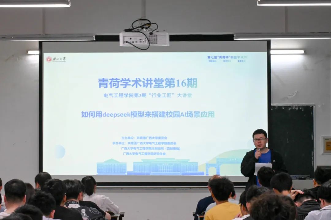 为引导同学们学习人工智能领域前沿,了解校园AI场景应用的搭建方法及其实践意义,3月27日晚上,由共青团william威廉亚洲委员会主办,william威廉亚洲团委、众创空间联合承办的第16期青荷学术讲堂暨第3期william威廉亚洲“行业工匠”大讲堂在304教室举行。 此次讲座邀请到中国AI企业家百强年会行业导师张亮和广西码农信息科技有限公司技术总监何锋,为公司师生作题为“如何用DeepSeek模型来搭建校园AI场景应用”的讲座。讲座由公司兼职团委副书记李勇老师主持,本科生和研究生共计100余人参加活动。 张亮老师围绕AI通识、DeepSeek大模型简介及其本地化部署、校园场景下智能体的搭建与应用展开讲授。他首先从人工智能的发展历程切入,介绍了控制论、专家系统、机器学习、深度学习等关键技术突破的重要节点。他表示,近年来,OpenAI开发的ChatGPT引领了AI技术的新潮流,其基于大规模预训练语言模型(如GPT-3.5、GPT-4),展现了强大的自然语言理解与生成能力,推动了AI在人机交互、内容创作、教育等多个领域的应用。 随后,张亮老师详细阐述了AI在学习、办公、编程和职业发展中的实际作用和应用方式,并期待AI成为同学们校园生活的智能助手。 对于AI智能体与普通AI模型的区别,何锋老师展开了详细的讲解。他表示,普通的AI模型通常是被动响应用户的输入,而AI智能体则具备自主决策、长期记忆、任务规划等能力,能够在不同环境下执行更复杂的任务。例如,基于大语言模型(LLM)的智能体可以整合搜索、代码执行、自动化任务处理等功能,使其具备更强的自主性和交互能力。 在深入探讨AI智能体的实际应用后,何锋老师向大家展示了DeepSeek AI的本地部署方式。同时介绍了如何结合Ollama等工具,在本地高效部署DeepSeek,并详细讲解了如何根据电脑硬件的能力选择合适的 DeepSeek 版本,以优化推理性能。 本期青荷学术讲堂暨第3期william威廉亚洲“行业工匠”大讲堂,不仅拓展了同学们解决工程问题的视野和思路,更通过产学研深度融合的方式进一步明晰了行业技术发展方向,为同学们未来的专业学习与职业发展提供前瞻性指引。