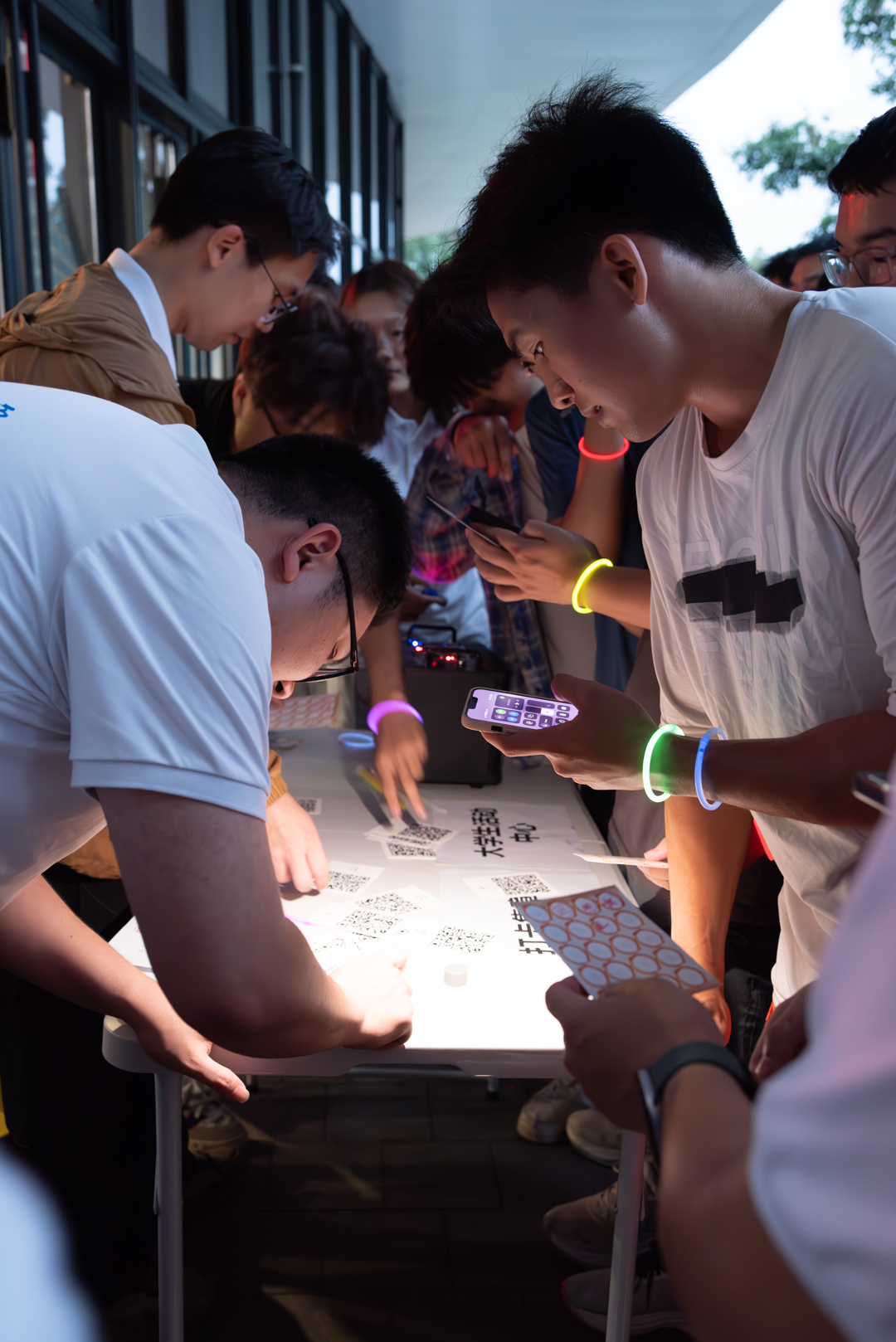 完成全程并集齐“五”“四”“青”“年”四枚印章的同学们可凭集章卡兑换定制礼品,收获日历、徽章等奖品。夜色中,荧光手环连成流动的光带,与欢声笑语交织,为校园增添一抹青春亮色。