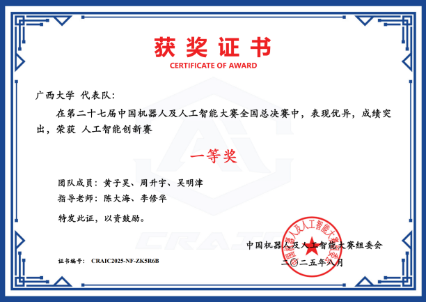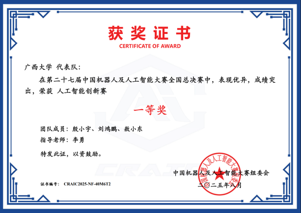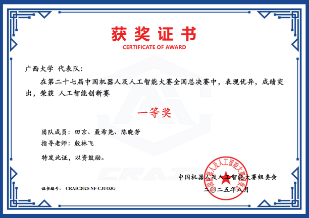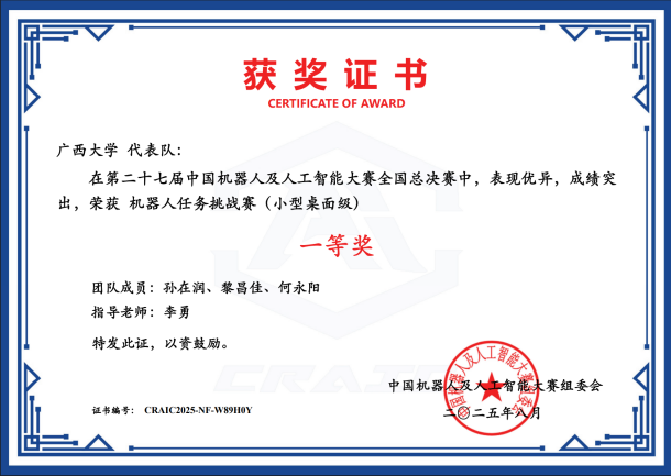 近日,第二十七届中国机器人及人工智能大赛落下帷幕,公司在本届比赛中荣获国家级奖项25项,其中一等奖6项、二等奖8项、三等奖11项;省级奖项53项,包括一等奖16项、二等奖21项、三等奖16项。此次大赛充分展现了公司在机器人及人工智能领域的实力与教学成果,是学经理期以来注重团队建设、创新实践与人才培养的集中体现,也为相关学科的持续发展与高水平人才培养注入了新动能。