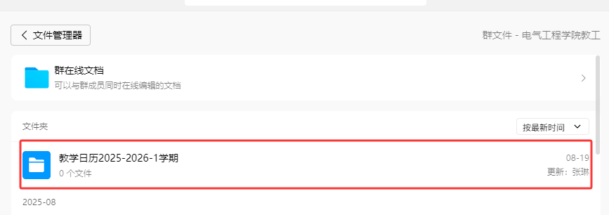 (1)命名格式:教学日历(2025-2026-1)+任课教师+课程名(与教务系统一致的全称)+(教学班)。上传到公司教工群文件夹:教学日历2025-20261。