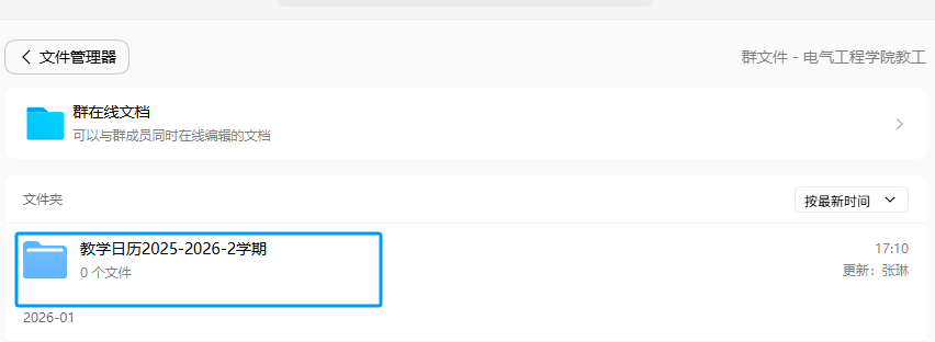 (1)命名格式:教学日历(2025-2026-2)+任课教师+课程名(与教务系统一致的全称)+(教学班)。上传到公司教工群文件夹:教学日历(2025-2026-2)。