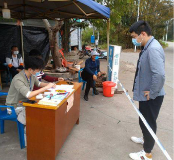 她主要是负责对外来小车进行拦截,记下车牌号,记录进村人数,对其进行体温检测并记录体温;对摩托车、电车等车辆进行出入证登记时间,对其无出入证,不戴口罩者进行拦截、劝阻、不放行。跟村民积极宣传疫情防控知识,用行动告诉村民疫情的严重性,提醒他们万不可放松警惕。她说:“我是贫困家庭的员工,一直以来都有国家、社会、集团以及爱心人士帮助我,我一直铭记在心,也十分感谢他们的帮助,我想通过自己的努力,做一些力所能及的事来回报社会。”