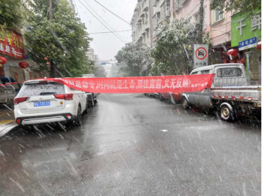虽然王涛所处的街道任务很重,需要干的事情很多,经常是起早贪黑,但他表示并不觉得累,认为这是一件光荣的事情。在这十天里,他都坚持到自己的岗位上,有一两天镇上漫天飞雪,他仍冒雪前行,充满着热忱,认真做好每一件防疫工作,用热情关心他人、温暖他人。