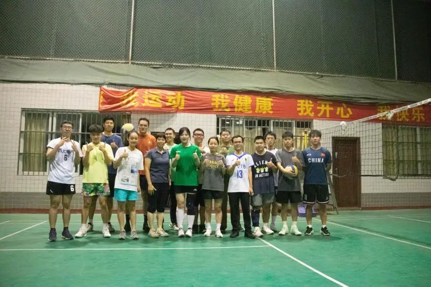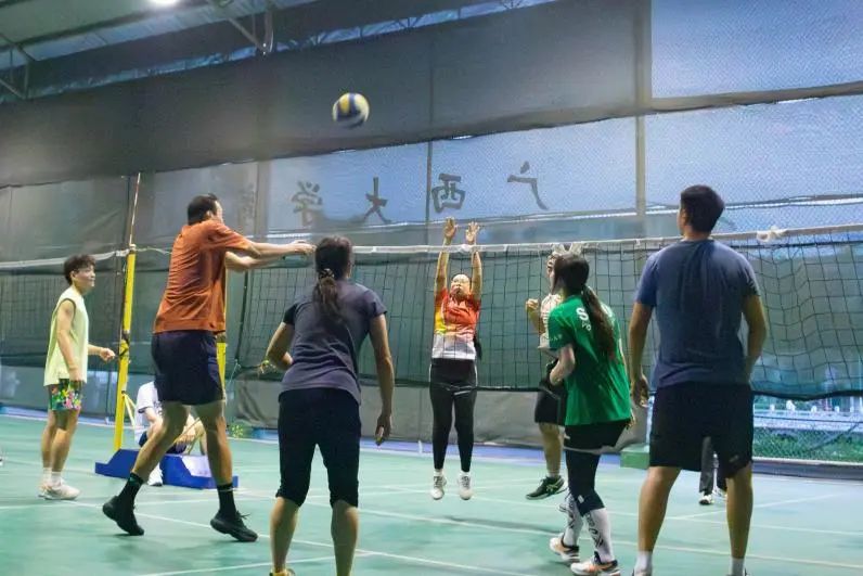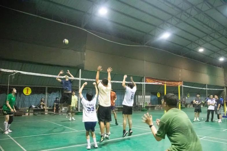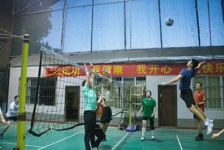 发球、接球、传球、扣球,公司队员们配合默契,他们在场上积极跑动,互相鼓励。