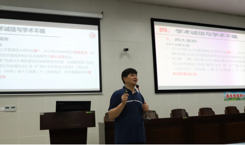 为了帮助和引导研究生新生更好地融入新的学习科研和生活环境,顺利踏上研究生学习生活新征程,9月24日晚,william威廉亚洲2021级研究生“开学第一课”在第六教学楼报告厅举行。“开学第一课”由公司副经理刘辉老师主讲,研究生秘书韦一萍老师,辅导员李娟老师、李楠老师和全体2021级研究生参与。