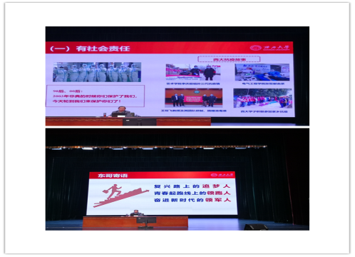 3.12月1日下午,学工组组织全体辅导员、2020级新生在第六教学楼参加公司党委书记刘正东给全体新生上形势与政策课。刘书记以《学好用好党的十九届五中全会精神 勇做新时代“五有”领军型人才》为题,纵论我国现代化与西方现代化的历史过程,以及我国现代化建设的历史奇迹;同时展望五中全会描绘的宏伟前景,引导大家把人生过程与我国社会主义现代化建设的进程对标,努力成为新一代全面发展的超硬核的“五有”领军型人才。