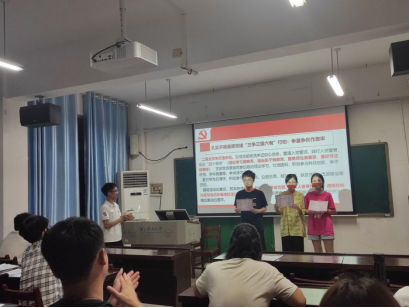 会上,支部还对获得“2023届广西壮族自治区普通高等教育优秀毕业生”的范协洋、何海伦、王思敏三位同志进行表彰,激励大家向榜样学习。