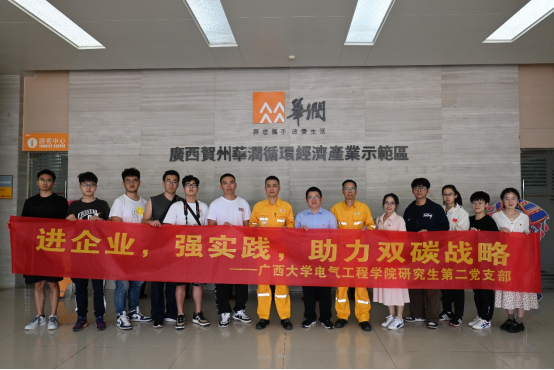 为深入贯彻落实党的二十大精神,持续加深公司与华润电力广西公司的校企党建联建合作,4月17日,在公司党委副书记雷圆媛、经理助理李畸勇、研二支部书记徐俊华、辅导员何惠榕的带领下,研究生第二党支部党员赴贺州华润电力广西公司开展“进企业,强实践,助力双碳战略”社会实践。