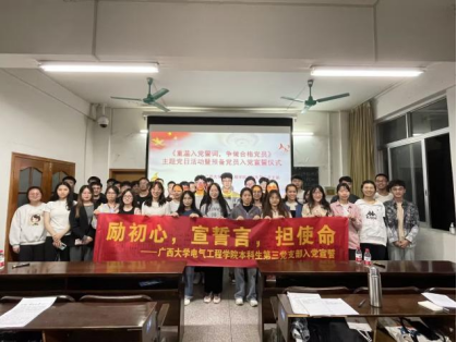 活动开始,本科生第三党支部副书记邹然表示入党宣誓是党员政治生命开始的象征,是非常庄重、严肃的事情,对党员同志有重大的教育意义。预备党员应时刻牢记自己在党旗下所立下的誓言,在今后的工作中,努力克服自身存在的缺点和不足,做好为党和人民的利益牺牲一切的准备,争取成为一名合格的共产党员。