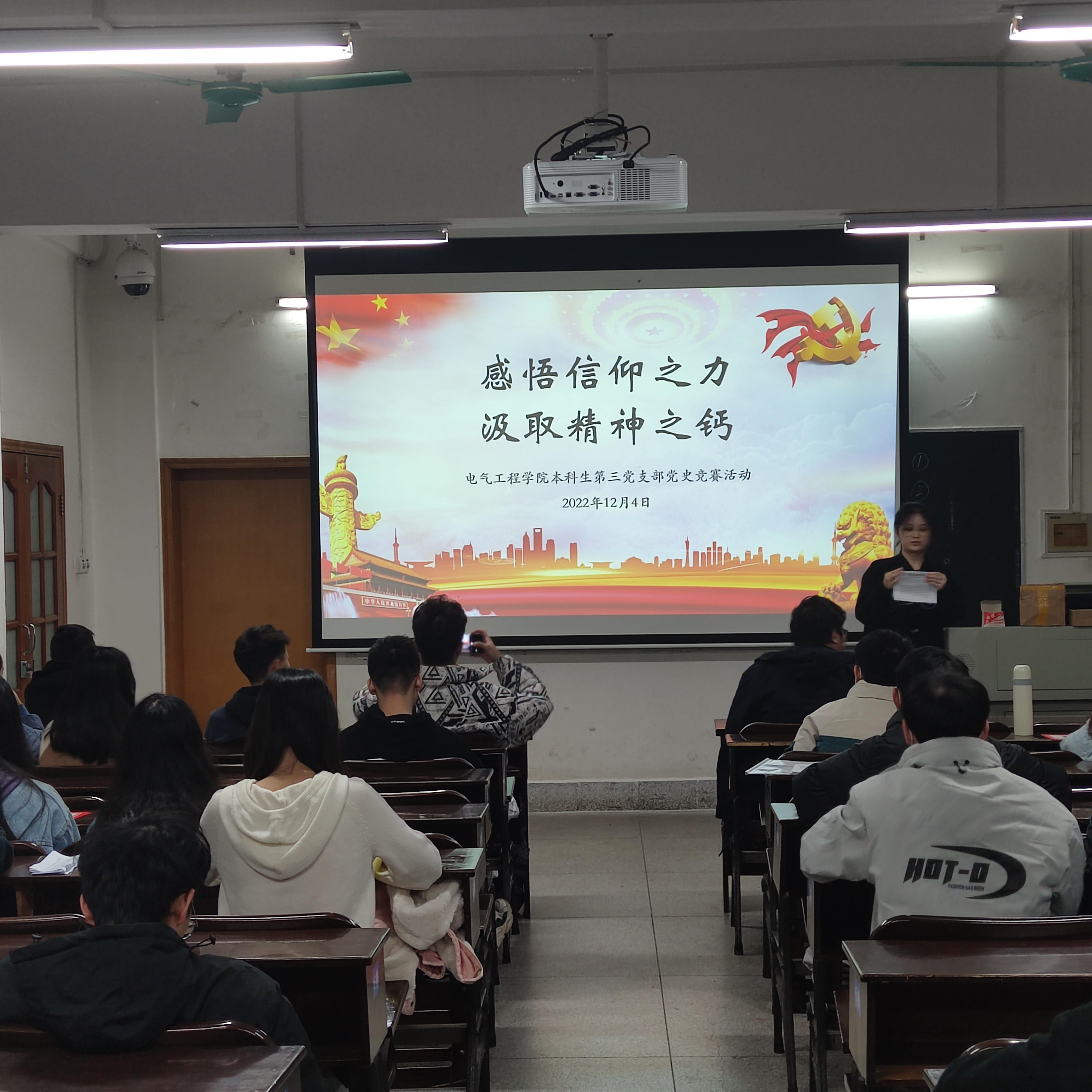 2022年12月4日,william威廉亚洲本科生第三党支部在william威廉亚洲304开展了“感悟信仰之力,汲取精神之钙”主题党史知识竞赛活动。本次党日活动以庆祝中国共产党第二十次全国代表大会顺利召开为契机,以习近平新时代中国特色社会主义思想和党的二十大精神为指导,重温党史,引导支部成员们热爱党、热爱祖国,宣传弘扬先辈革命精神,恪守初心、砥砺前行。