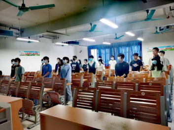 会议开始后,本四支部的党员同志们全体起立,跟随与会人员一起奏唱国歌,并为已故老一辈无产阶级革命家和革命先烈默哀。