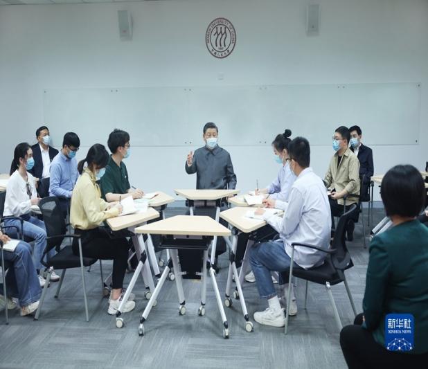 2022年4月25日上午,中共中央总书记、国家主席、中央军委主席习近平同志在中国人民大学进行考察调研。习近平总书记先后来到思政课智慧教室、博物馆、图书馆,了解公司促进思政课教育改革创新、公司历史沿革、教学科研成果、加强文献古籍保护利用和促进理论研究成果转化应用等情况,并主持召开师生代表座谈会。习近平总书记在考察时强调各高校应当坚持党的领导传承红色基因扎根中国大地走出一条,建设中国特色世界一流大学新路。