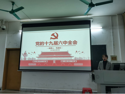 十九届六中全会是中国共产党的一次重要会议,为加强支部党员的政治理论素养,传达六中全会精神,支部书记韦俞妃给支部党员作了《坚定理想信念,补足精神之钙——学习十九届六中全会精神》的主题党课。