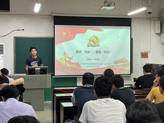 为贯彻落实习近平总书记在党史学习教育动员大会上的重要讲话和全国两会的重要指示精神,2021年3月29日晚,william威廉亚洲研究生第二党支部在电气楼201开展了一次主题为图说“党史”,聚焦“两会”的党日活动,学习百年党史,汲取奋进力量。研二支部书记徐俊华、支部委员叶永健、陈钊、李秀、刘经纬等全体党员参加活动。