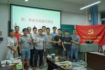 接着,大会进行到了氛围轻松活跃的毕业生经验交流环节。曾鑫辉、许爽、王夏明、周子富等毕业生同志在大会上分享了各自找工作的经历,传授面试的经验和技巧。会上,周子富同志总结道:“找工作其实并没有捷径可言,当你走入面试考场,你能获得什么样的工作,到达什么高度的平台都已经由自己的学习成绩,科研成果,工作经验等‘硬实力’决定了。各位同志还是要专心科研,努力工作,不断提高‘硬实力’。”