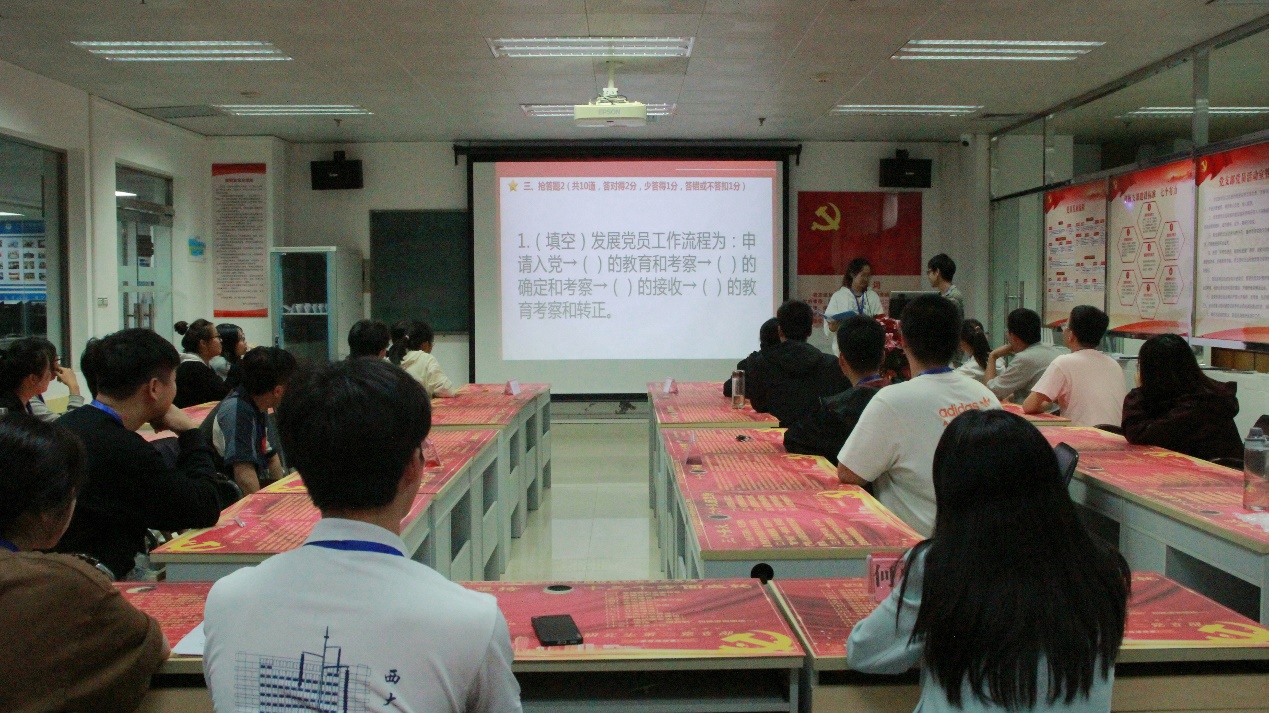 知识竞赛分必答与抢答两个环节,内容涵盖党的历史、理论知识、党章党规等多方面。活动现场,选手们积极踊跃,展现了青年党员应有的精神风貌。